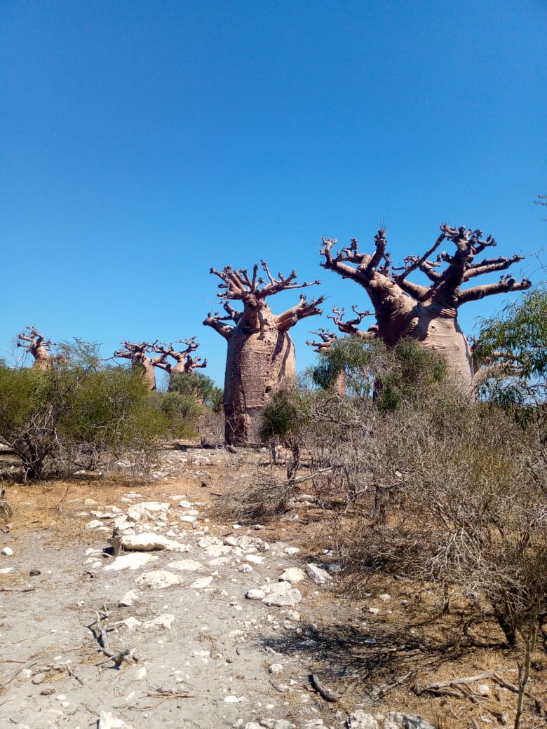L’aventure se poursuit vers  Andavadoaka à travers une piste en terre battue enchainée par une piste de sable qui  semble interminable ; décorée par les forêts d’Euphorbia, de didieracea, de baobabs. Les chanceux peuvent voir l’oiseau appelé Toulourante endémique de la région durant le trajet.